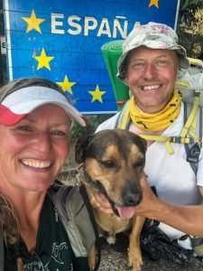 Al sinds anderhalve week kunnen we de besneeuwde bergtoppen van de Pyreneeën zien, maar nu lopen we er ongeveer tussen. Om bij de grenspost echt Spanje in te stáppen (en niet per auto, dat zou net een beetje zielig zijn),
